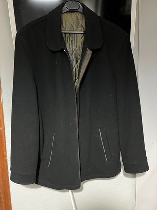 -Chaqueta negra de hombre, de cuero. -Tiene dos bolsillos frontales con solapa. -Se abrocha mediante 5 botones. -Mide: 48 cms de hombros -58 cms de sisa a sisa -79 cms de largo -60 cms de manga