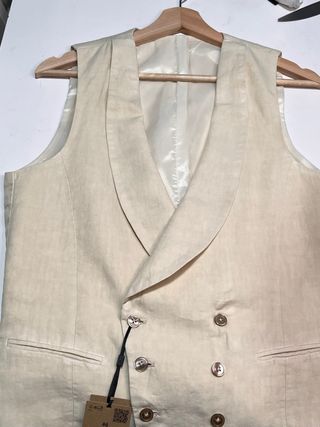 Elegante chaleco de traje, perfecto para ocasiones formales. - Diseño de doble botonadura. - Bolsillos frontales. - Forro interior de satén.