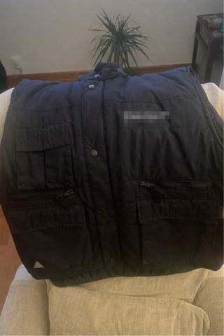 Chaqueta Sicab azul marino con muy poco uso, talla 16. Tiene un forro polar dentro con una cremallera que se puede quitar o poner según el frío. Aparte de los bolsillos normales que son con cremallera, tiene otros por dentro y broches en las mangas y en la parte trasera. El gorro también tiene la opción de recogerse como se ve en las fotos.