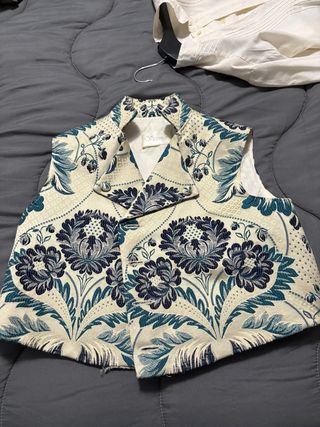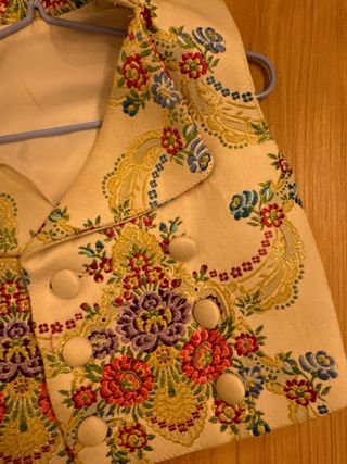 Elegante chaleco de indumentaria fallera con un diseño floral. en mi perfil hay mas chalecos trajes pantalones y zapatos