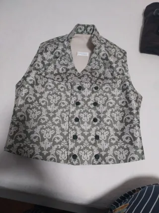 Elegante chaleco cruzado con un diseño damasquinado en tonos beige y verde. Botones forrados, Solo puesto una ofrenda Fue hecho a medida