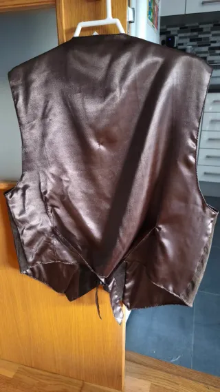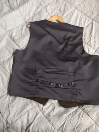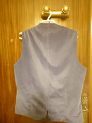 Conjunto de traje de tres piezas para chico, compuesto por pantalón, chaleco y chaqueta.COMPLETAMENTE NUEVO,SIN ESTRENAR!! UN SUPER ESTILO ELEGANTE Y UN LOOK UNICO!! PARA EVENTOS,CELEBRACIONES,FIESTAS,E T.C.. - Chaqueta con cuello solapa y cierre de un botón. - Chaleco con cierre de dos botones. - Pantalón de corte recto.