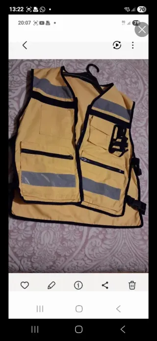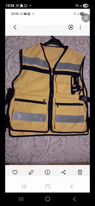 Chaleco de trabajo de alta visibilidad en color amarillo. - Cierre frontal con cremallera. - Múltiples bolsillos con cremallera y solapa. - Bandas reflectantes horizontales y verticales. - Ribete negro en todo el contorno. Impecables ver fotos obrero con muchos bolsos Talla xL