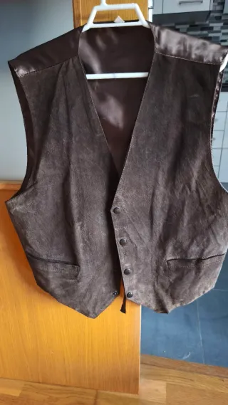 Chaleco de piel en color marrón, talla M. - Material: Piel/cuero. - Cierre de botones. - Dos bolsillos delanteros.