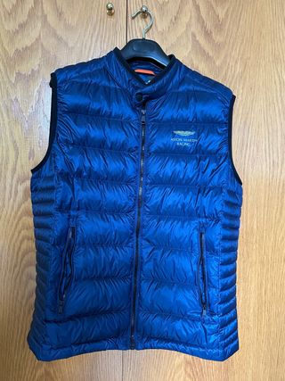 Chaleco acolchado de la marca Hackett con el logo de Aston Martin. Sin estrenar y con las etiquetas sin cortar. Ideal para regalo. A menos de la mitad de precio de su valor en tienda (más de 200€) - Diseño moderno con paneles laterales en contraste. - Cuello alto. - Cierre de cremallera frontal. - Bolsillos laterales e interior.