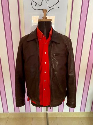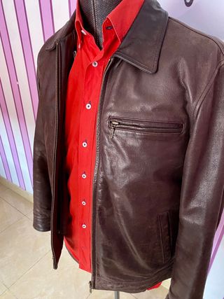 Chaqueta de piel marrón con chaleco a juego. Pueden utilizarse las dos prendas juntas o por separado - Chaqueta de cuero. - Chaleco incluido e independiente con detalles en piel. - Cierre de cremallera. - Prenda de muy buena calidad, comprada en El Corte Ingles. AUTENTICA PIEL.