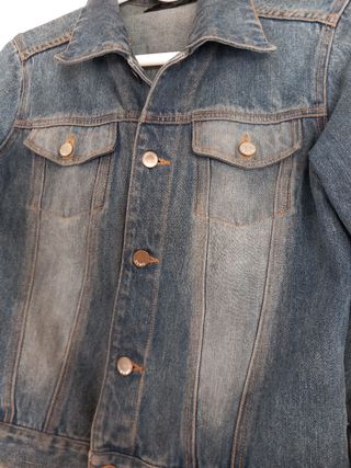 Clásica cazadora vaquera de la marca Zara. - Diseño atemporal. - Dos bolsillos en el pecho. - Cierre de botones metálicos.
