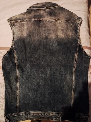 Chaleco vaquero de estilo clásico. - Diseño sin mangas. - Cierre de botones. - Dos bolsillos en el pecho. ❗️tiene una pequeña mancha blanca de lejía en la espalda