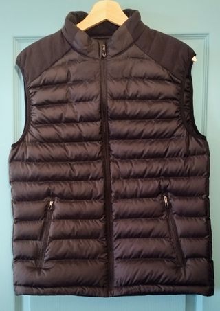 Chaleco acolchado de la marca INESIS en color negro y talla S. Perfecto para añadir una capa extra de abrigo. - Diseño acolchado. - Cuello alto. - Cierre de cremallera frontal. - Dos bolsillos laterales con cremallera.