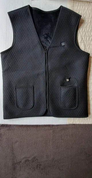 Chaleco con forro interior suave y diseño acolchado. Hombre/Mujer - Cierre de cremallera frontal. - Dos bolsillos delanteros. - Boton de encendido a la altura del pecho con tres posiciones. - Puerto USB integrado en el bolsillo. -Batería no incluida. Se puede usar con cualquier Powerbank. - Talla XL, pero da poca talla, se ajusta más a una L.