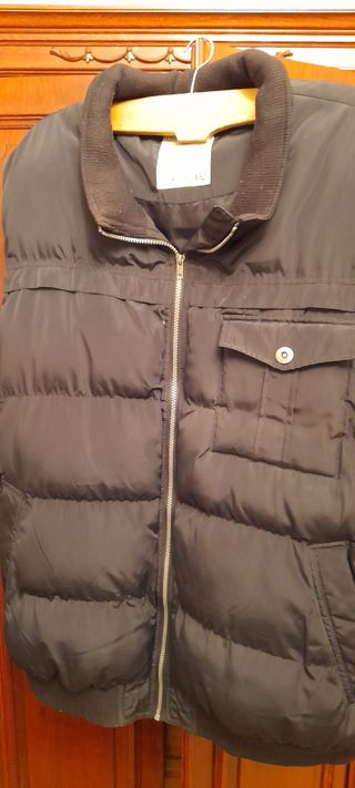 Chaleco en buen estado, calentito y acolchado. Se deja de usar por quedar grande. Bolsillos laterales y uno interior. Se cierra con cremallera. Muy cómodo y práctico