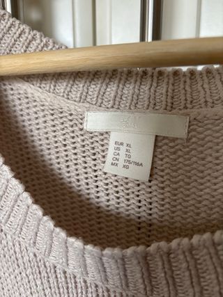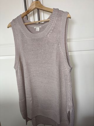 Chaleco de punto H&M en color beige, talla XL. - Diseño sin mangas. - Cuello redondo. - Aberturas laterales en el bajo. - Muy amplio.