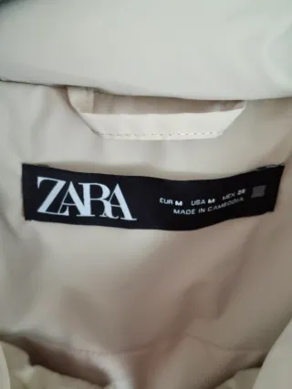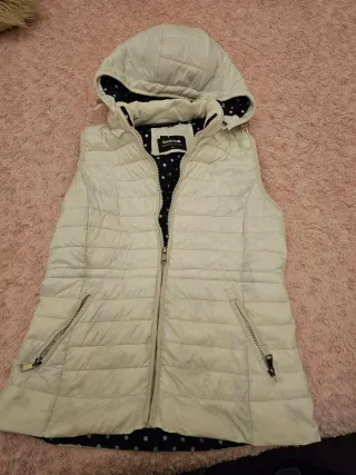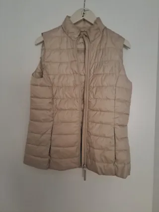 Chaleco plumífero de Zara en color beige. - Cierre de cremallera.