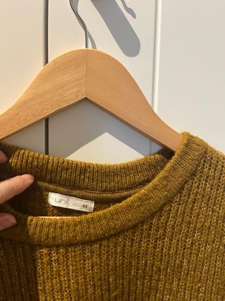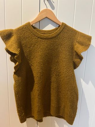 Chalecos de lana con un diseño de canalé y mangas con volantes y cuello alto y pico - Tejido de punto. - Colores: gris , beige, amarillo dorado y marrón tirando a gris 8 euros cada uno, hago oferta