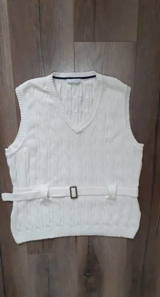 Chaleco de punto con diseño trenzado y cinturón. - Cuello en V. - Cinturón con hebilla. - Tejido de punto. - 100% algodon
