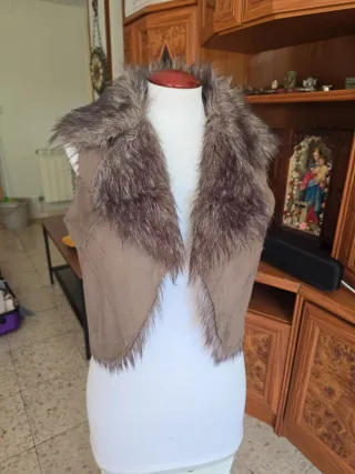 Chaleco de pelo sintético con un tacto muy suave. Es una prenda versátil y cálida. - Diseño con cuello alto. - Cierre de cremallera. - Acabado de pelo en capas. No da mucha talla, correspondería a una S más o menos