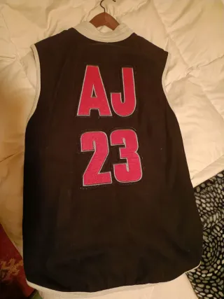 Chaleco deportivo con el icónico diseño AJ 23. Años 90 (35 años) y como nuevo - Color principal negro. - Detalles en color rosa. - Sin mangas.