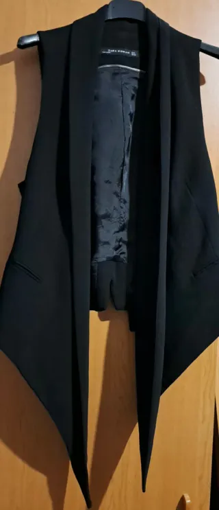 Elegante chaleco negro de Zara con un diseño moderno y favorecedor. - Corte asimétrico. - Solapas amplias. - Bolsillos frontales.