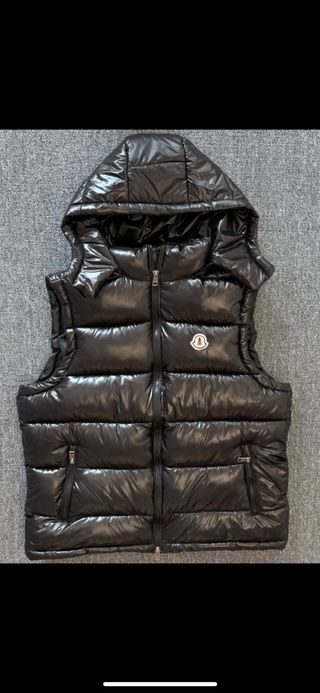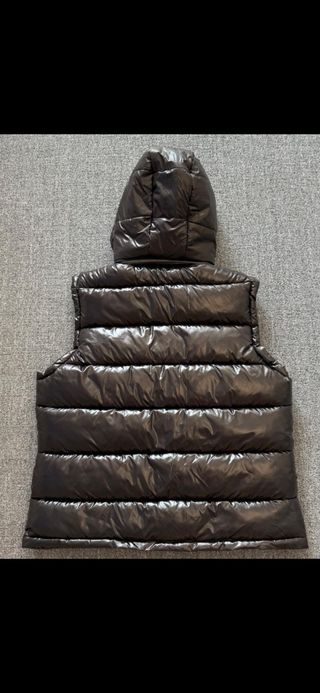 Chaleco acolchado con capucha. - Cierre de cremallera frontal. - Dos bolsillos laterales con cremallera. - Logo de la marca en el pecho.