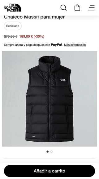 Chaleco acolchado The North Face en color negro. Ideal para añadir una capa extra de abrigo. - Cierre completo con cremallera. - Bolsillos laterales con cremallera. - Logo de la marca en el pecho y en la espalda. MEDIDAS: Hombro 8 cm Pecho 54 cm Largo 64 cm
