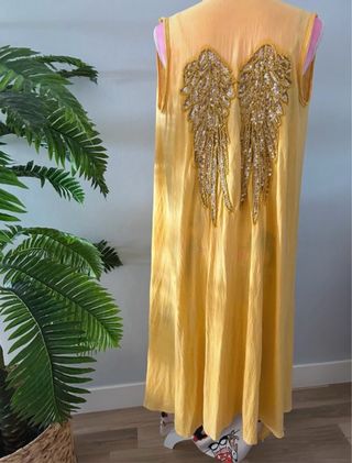 Preciosa chaquetilla larga de estilo boho. Ideal para darle un toque especial a cualquier look. - Diseño único con alas doradas en la espalda. - Confeccionada en una tela ligera y suave de algodon. - Corte amplio y favorecedor.