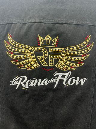 Chaleco vaquero negro. Hecho a mano. Es una prenda única y llamativa. - Diseño con alas y corona bordados. (alas y corona doradas y letras en plata) - Detalles en dorado y pedrería. - Estilo desgastado en los bordes.