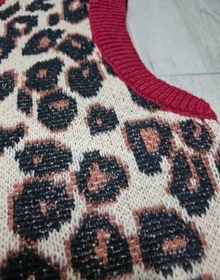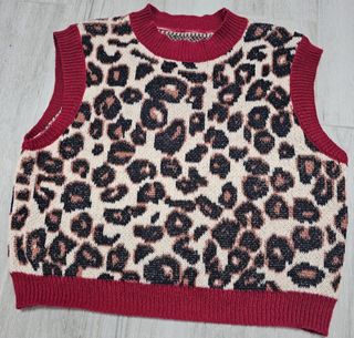 Chaleco de punto con un llamativo estampado de leopardo. Perfecto para añadir un toque salvaje a tu look. - Diseño sin mangas. - Cuello redondo.