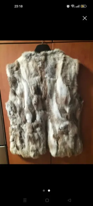 Chaleco de pelo de conejo con un diseño elegante y moderno. Perfecto para añadir un toque de estilo a cualquier atuendo. - Material: Pelo de conejo. - Color: Marrón y gris.