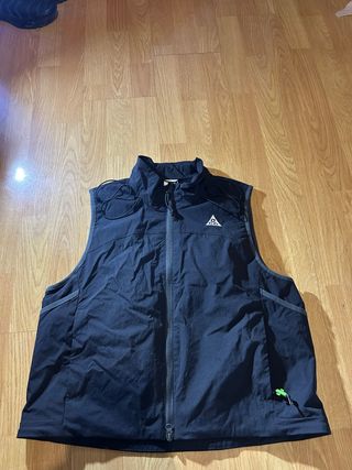 Chaleco deportivo Nike ACG de color negro y talla S. Diseño moderno y funcional. - Cierre de cremallera frontal. - Cuello alto. - Bolsillos laterales.