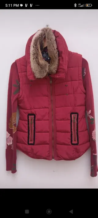 Chaqueta tipo chaleco acolchado El pelo del cuello y mangas de pueden quitar