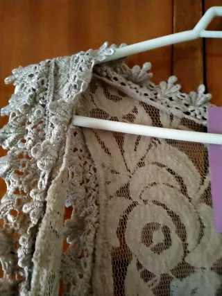 Elegante chaleco de encaje con un diseño floral intrincado. Su estilo abierto lo hace perfecto para superponer de nueva temporada -talla M/L - Acabado con un borde festoneado. - Tejido ligero y aireado.
