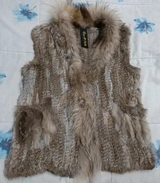 Chaleco de pelo sintético con un diseño llamativo. - Cierre de corchetes. - Forro interior. Yo creo que equivale a talla S dado que es una XL de niños. Se ha usado tan sólo 1 vez.