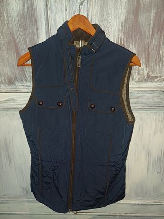 Chaleco largo con capucha, perfecto para añadir una capa extra de abrigo. - Cierre de cremallera frontal. - Dos bolsillos laterales con cremallera. - Diseño acolchado. Usado pero bien conservado