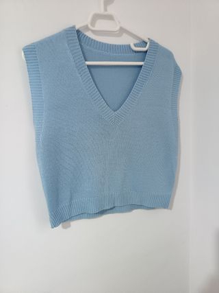 Chaleco de punto con cuello en V. - Tejido de punto suave. - Diseño sin mangas. - Acabado acanalado en el bajo.