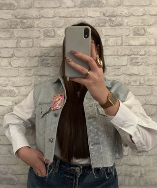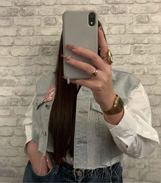 Chaleco denim crop en color azul claro con detalle de brillos plateados en toda la prenda.Bajo deshilachado y cierre frontal de botones metálicos.A pesar de ser talla única serviría desde una talla XS hasta una talla L ya que el corte es recto,crop y oversize.Se encuentra completamente nuevo con etiquetas listo para estrenar y elevar los outfits básicos con un toque glam Medidas: Largo 46,5cm x Ancho de sisa a sisa 54cm Composición: 90% Viscosa 10% Poliéster 🚚ENVÍOS EN MENOS DE 24H🚚