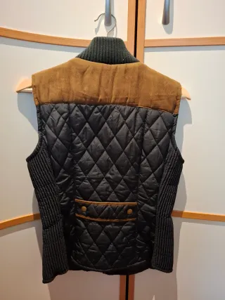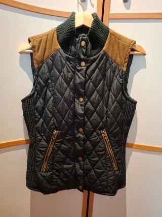Chaleco acolchado de color verde y marrón, perfecto para añadir una capa extra de abrigo. - Diseño acolchado. - Cierre de cremallera frontal. - Bolsillos interiores.