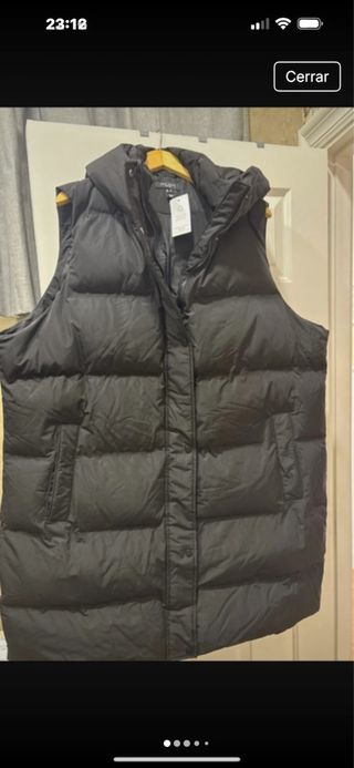 Chaleco acolchado de la marca Zara. Es una prenda versátil y cómoda. - Diseño sin mangas. - Cierre de cremallera frontal. - Cuello alto.