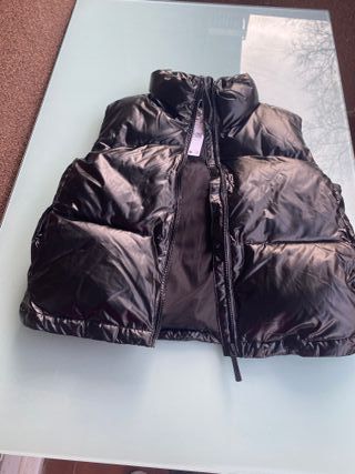 Chaleco acolchado de Mango con acabado brillante. - Cuello alto. - Cierre de cremallera. - Bolsillos laterales. Nuevo con etiquetas, ideal para esta temporada 🍂❄️ ✨ Marca: Mango 📏 Talla: S 📐 Medidas aprox: • 60 cm de alto • 48 cm de ancho 🖤 Color negro, moderno y fácil de combinar 📩 Escríbeme por mensaje si te interesa o para más info.