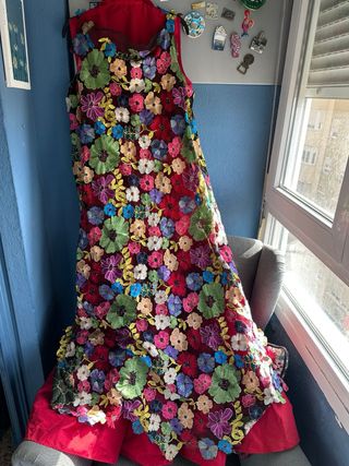 Chaleco-capa de tul bordado, solo la tela ya es de alta calidad. Está diseñado para sobreponer con un vestido o cualquier outfit que se antoje. (Incluso, si no es el chaleco de su gusto, se puede reutilizar la tela, una tela de alto precio y calidad.) Tiene los tirantes reforzados y la espalda con tul más rígido para que le dé ese toque de elegancia. MEDIDAS: Axila a axila - Unos 52 cm Largo total - unos 140 cm (es progresivo de delante hacia atrás, este largo es el de la espalda) Ancho total alrededor - unos 105 cm SE VENDE EL VESTIDO (que complementa a la perfección) y el BOLSO a juego en mi perfil.