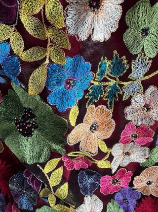 Chaleco-capa tul bordado flores multicolor