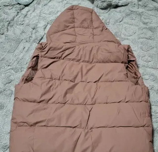 Chaleco acolchado con relleno de plumón, ideal para mantenerte abrigado. Es un artículo sin usar. - Diseño largo. - Con capucha. - Cierre de cremallera.