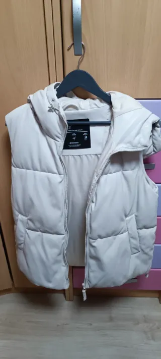 Chaleco acolchado de Zara con acabado efecto piel. - Cuello alto. - Cierre de cremallera. - Bolsillos laterales. - Totalmente nuevo - Talla XS