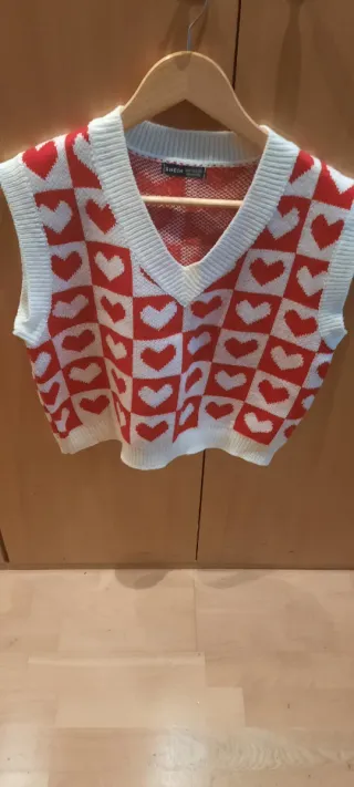 Chaleco SHEIN Corazones Rojo y Blanco Talla M