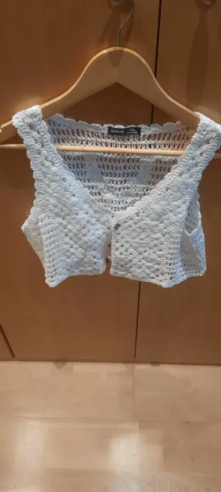 Chaleco ligero de verano con un diseño calado. - Escote en V. - Cierre con cordones. - Acabado con puntilla en los bordes.