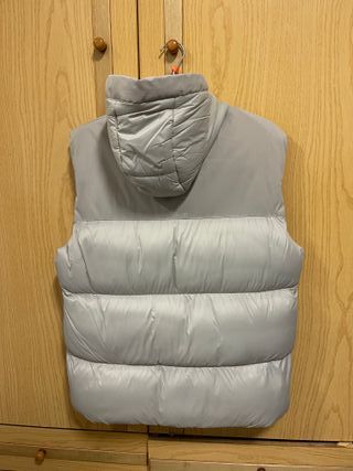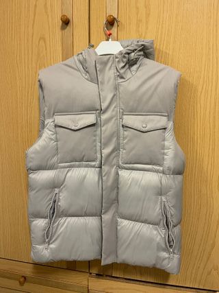Chaleco largo acolchado con un diseño moderno y elegante. Perfecto para añadir una capa extra de abrigo. Usado 3/4 veces. - Cierre frontal con cremallera. - Bolsillos laterales. - Capucha integrada.