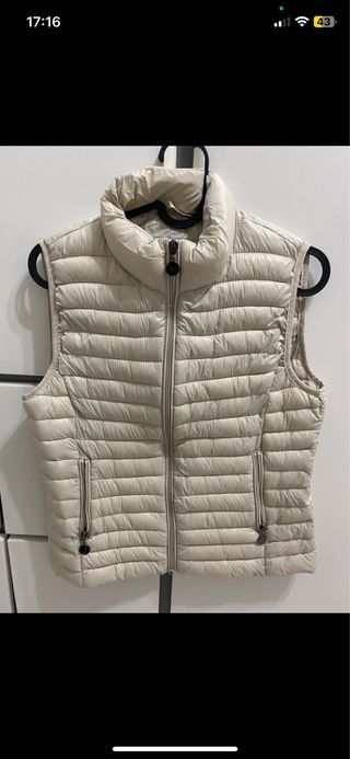 Chaleco acolchado con cuello alto y bolsillos. - Pone talla L, pero es una S - Cierre de cremallera frontal. - Bolsillos con cremallera y solapa. - Puños y bajo elásticos. - Cordón ajustable en el bajo.