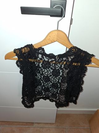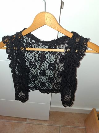 Preciosa chaqueta de encaje. Es negra y tiene un diseño delicado. - Talla única - sin manga. - Perfecta para ocasiones especiales