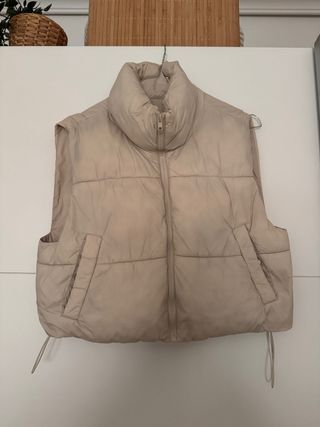 Chaleco acolchado de la marca Zara. - Diseño acolchado. - Cuello redondo. - Cierre de cremallera frontal. - Dos bolsillos laterales.