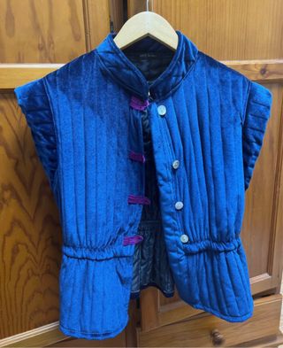 Chaleco acolchado de terciopelo con un diseño elegante. - Cierre con botones. - Detalle de pasamanería. - Mangas cortas. - Cuello mao.