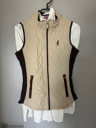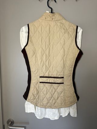 Chaleco acolchado con detalle de caballo bordado. SE VENDE SIN CAMISA CAMISA TRUCCO TALLA 38 BORDADA Chaleco + camisa 27,99✅ - Diseño acolchado en rombos. - Paneles laterales elásticos en contraste. - Cuello alto. - Cierre de cremallera frontal. - Bolsillos laterales con ribete